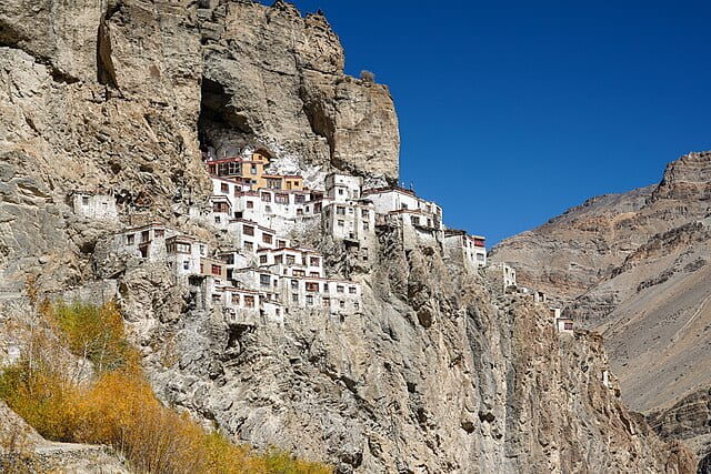 Phugtal Monastery is constructed around and inside a hollow cave. Its mysterious location and structure make it one of the most fascinating sites for visitors. It is located in the southeast part of the Zanskar region in Ladakh, Jammu and Kashmir.