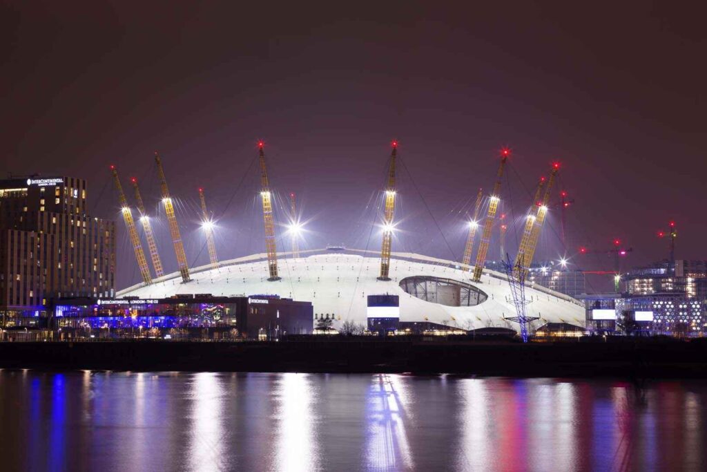 A total entertainment hub, the O2, located in the Southeast part of London is a large space with hosts of restaurants, exhibition spaces, a music club, and the United Kingdom’s second-largest indoor arena, the O2 Arena.
