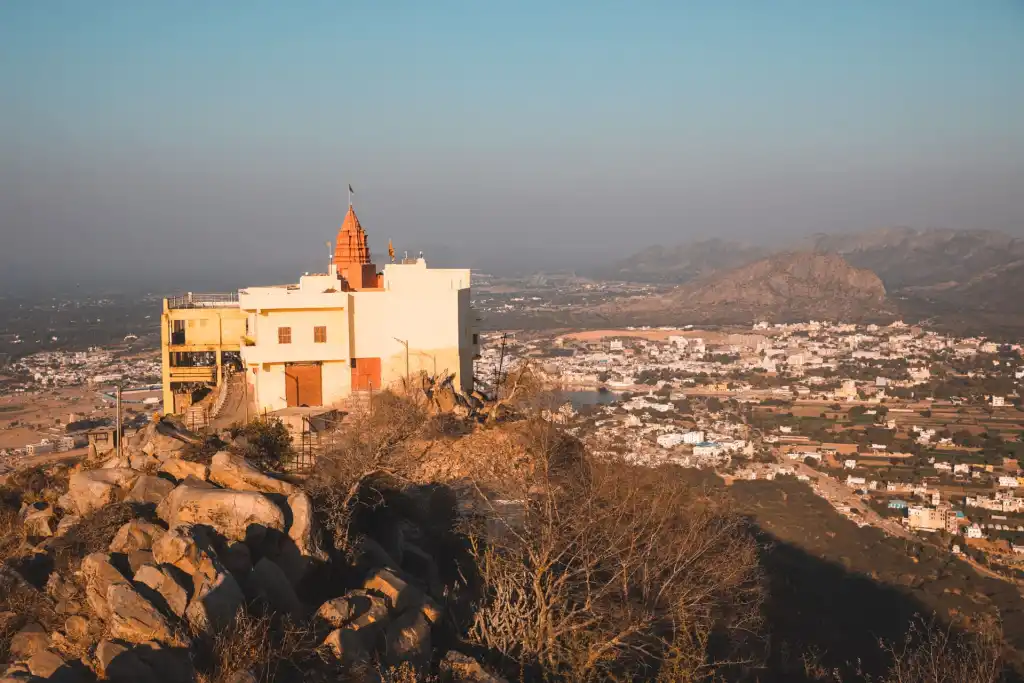 The Savitri Temple is one of the most famous pilgrimage places to visit in Pushkar. As the name indicates, this temple is dedicated to Gayatri, the distressed wife of Lord Brahma. One needs to reach the Ratnagiri hilltop by climbing approximately 200 stairs to reach this temple.