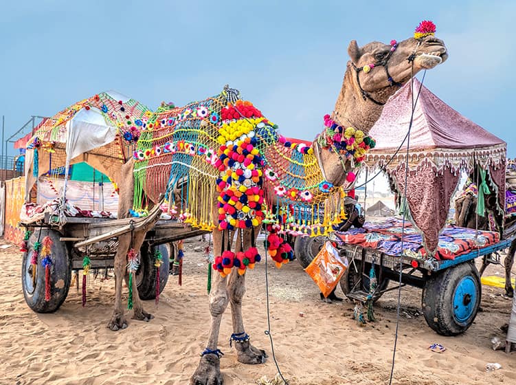 The Pushkar Camel Fair, also known as Kartik Mela, is one of the most beautiful camel festivals in the country. The festival is an 8-day long vibrant and colorful affair held in November every year. This fair is organized every year to encourage the local camel and cattle traders to do business during the holy Kartik Purnima.