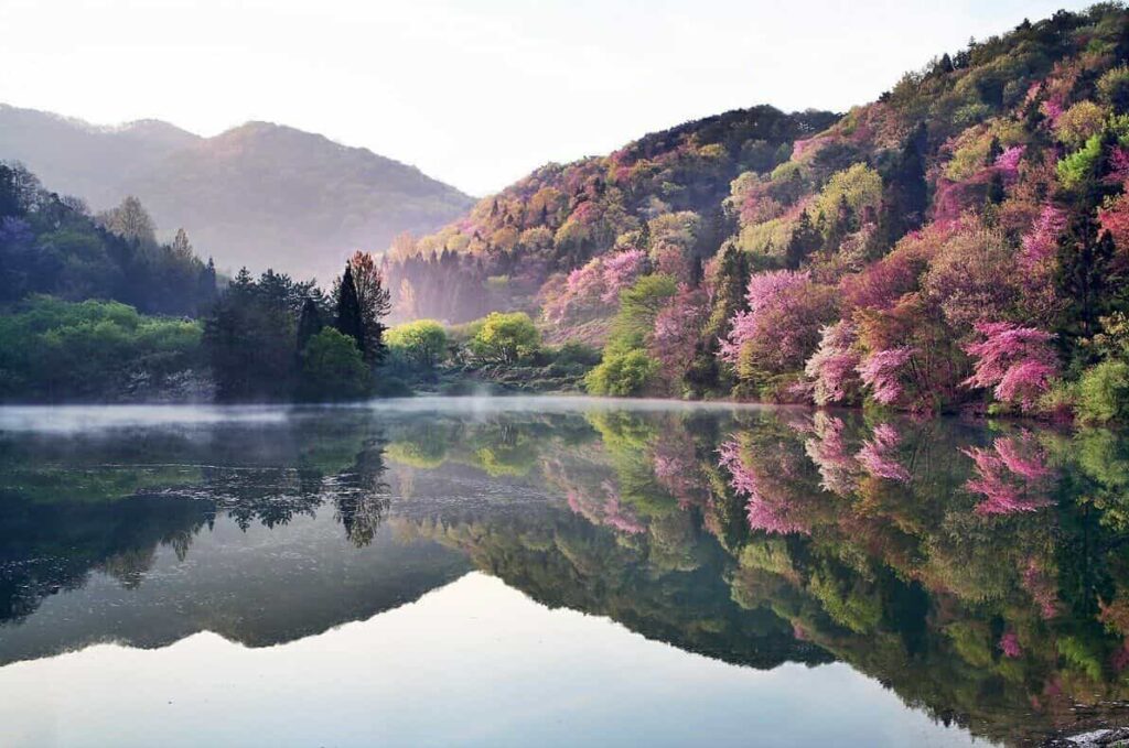 Seryang-Je, a reservoir built in 1969 in Hwasun, is another famous spot for both professional and amateur photographers for its ethereal mist and reflections of colorful blossoms and leaves.